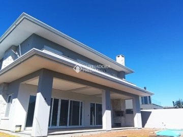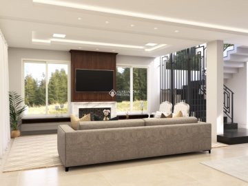 ALPHAVILLE - Casa NOVA em condomínio com 4 suítes, com gabinete, podendo ser a 5ª suíte térrea. Hall de entrada imponente com pé direito duplo, living 2 ambientes com cozinha integrada, lareira, churrasqueira, lavabo, banho social. Projeto de decoração pronto.