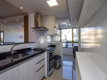 Apartamento 2 dormitórios sendo uma suíte e com 1 vaga de garagem.São 79 m² de área privativa,no bairro Petrópolis. Unidade de fundos em último andar com vista e bem silencioso. Semimobiliado, amplo living 2 ambientes todo em piso porcelanato Portinari 60x60 e piso vinílico tarkett nos dormitórios. Cozinha americana e sacada integrada com churrasqueira. Iluminação, teto em gesso e trabalhos decorativos em granito e Pedraflex. Ficarão os móveis planejados sob medida e as persianas internas/externas. Edifício com fachada diferenciada em granito, elevador, salão de festas com churrasqueira e baixo valor condominial. Ótima localização, próximo a av Protásio Alves, colégio Santa Inês, Parque Municipal Ararigbóia e Zaffari.