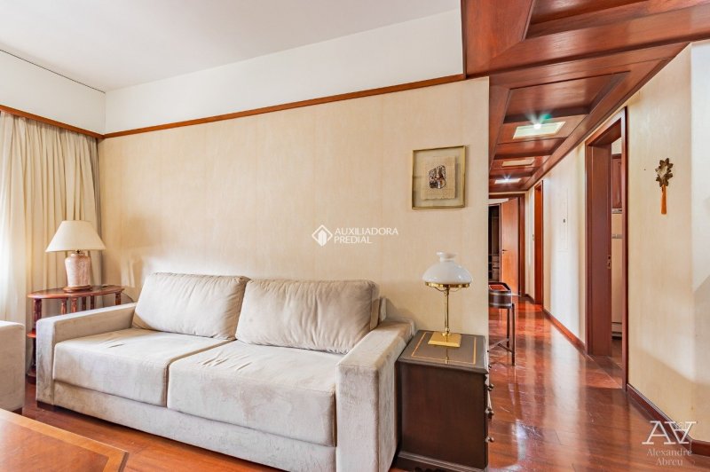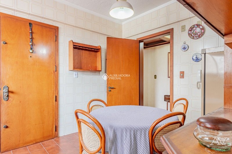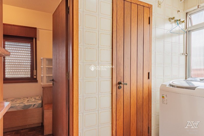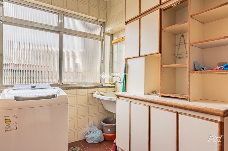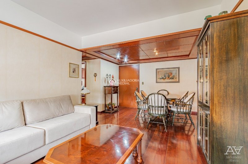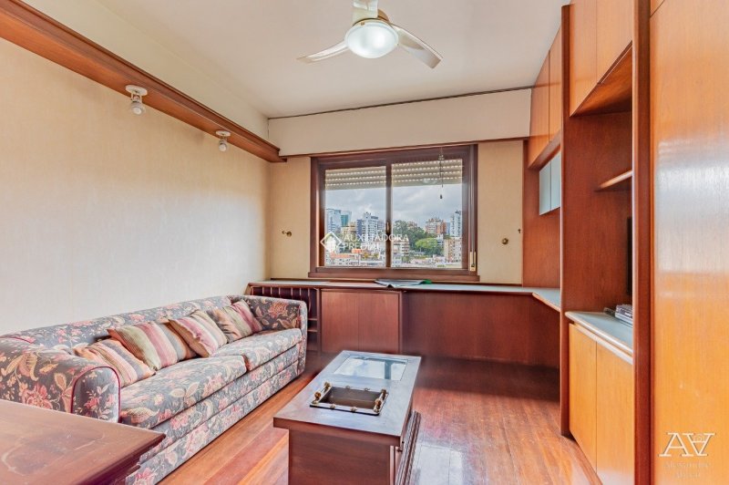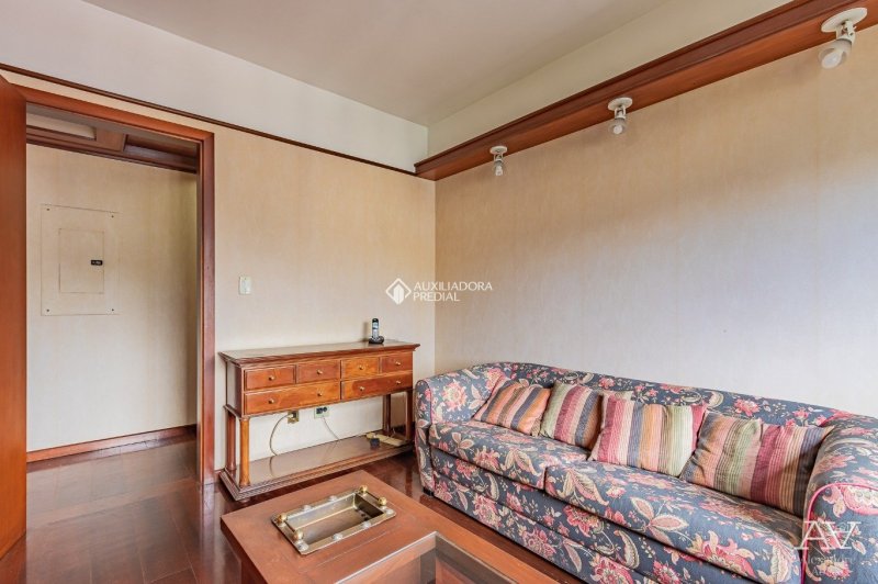 Apartamento 02 dormitórios, sendo um suíte, living amplo com piso em tabuão e janela ampla. Cozinha e área de serviços separadas com dependência de empregada. 01 Vaga de garagem.
