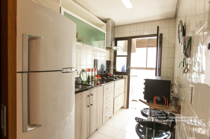Apartamento 3 dormitórios,semi-mobiliado, 1 suíte, living 2 ambientes, sacada com churrasqueira, cozinha montada com armários, área de serviço, agua quente, 81 m2 de área privativa, 1 vaga de garagem escriturada, em condomínio com salão de festas, portaria 24 horas, sala de fitness, em ótima localização no bairro próximo a todos os recursos.
