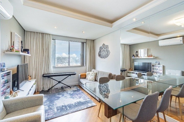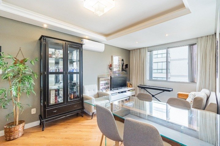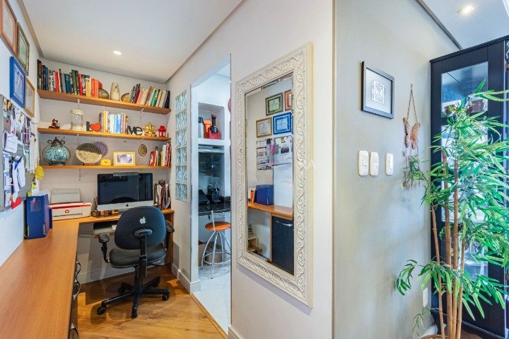 Excelente apartamento, com 67m² de área privativa distribuído em 02 dormitórios, Gabinete/Escritório, living para 02 ambientes, 01 banho social com ventilação natural, ampla cozinha e área de serviço separada. Fica no imóvel todos os móveis fixos, inclusive cozinha montada. Condomínio conta com portaria virtual 24h, baixo custo condominial e ainda oferece a possibilidade de locação de vaga no próprio prédio.